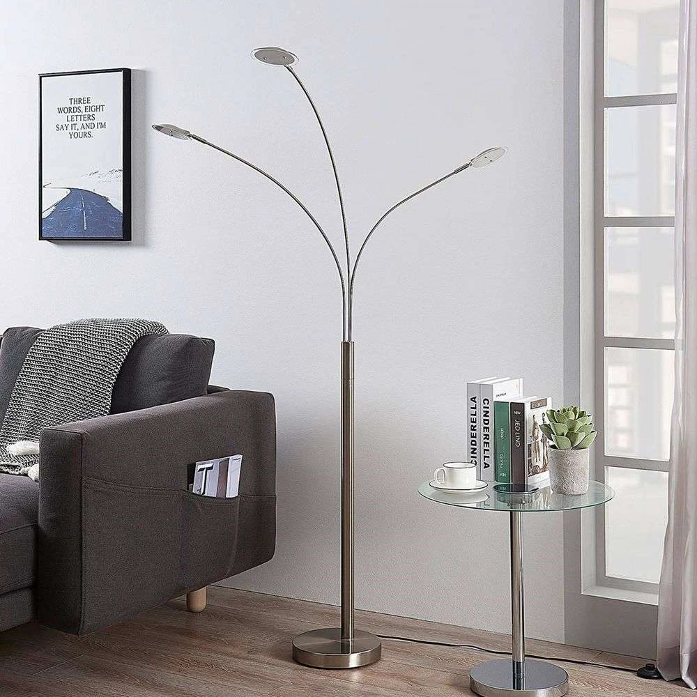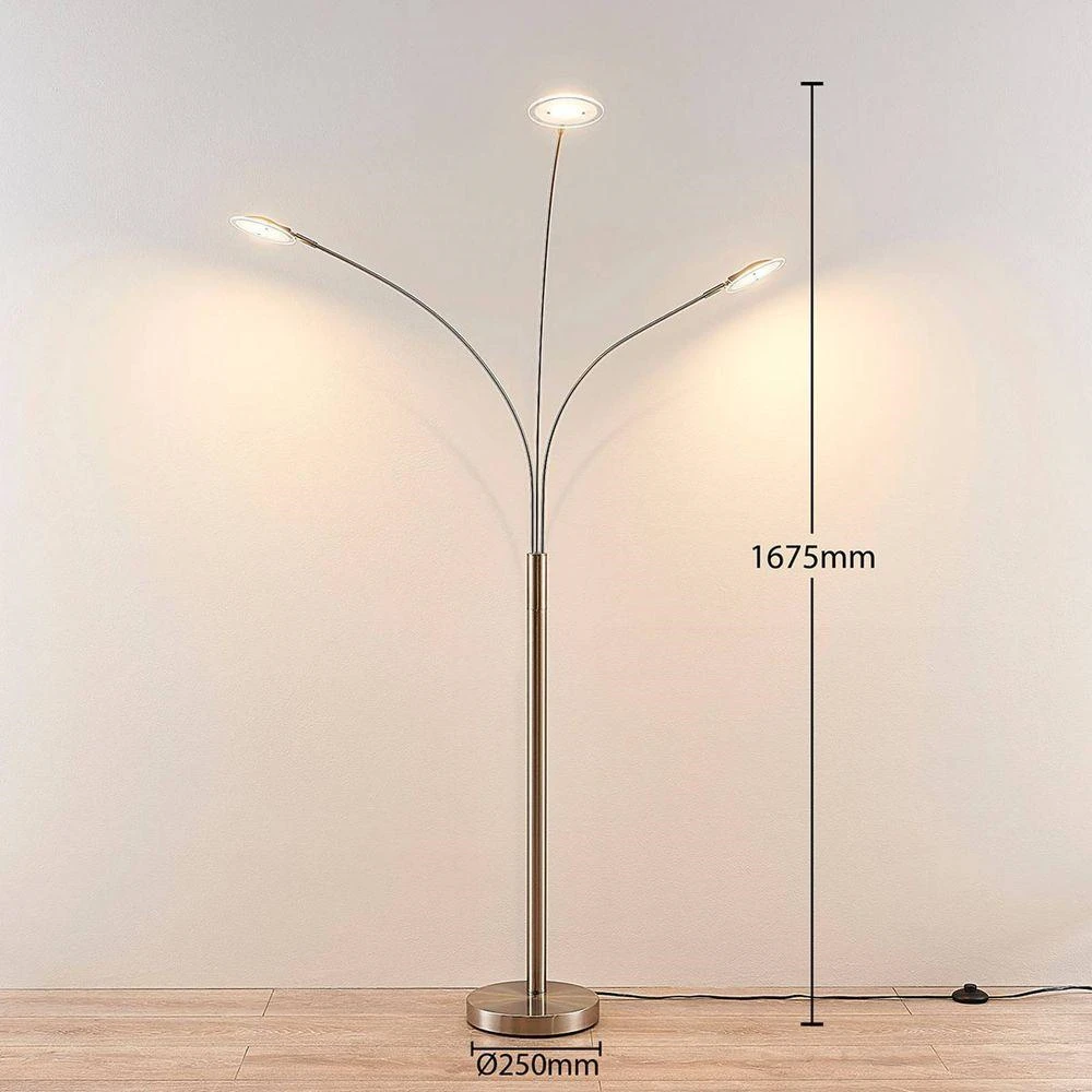 Anea 3 Lámpara De Pie Nickel/White – Lindby