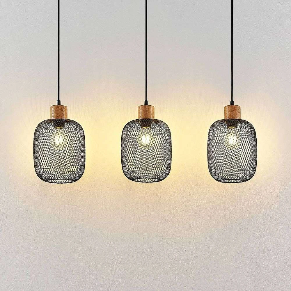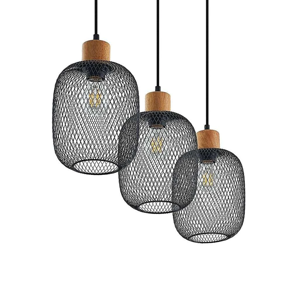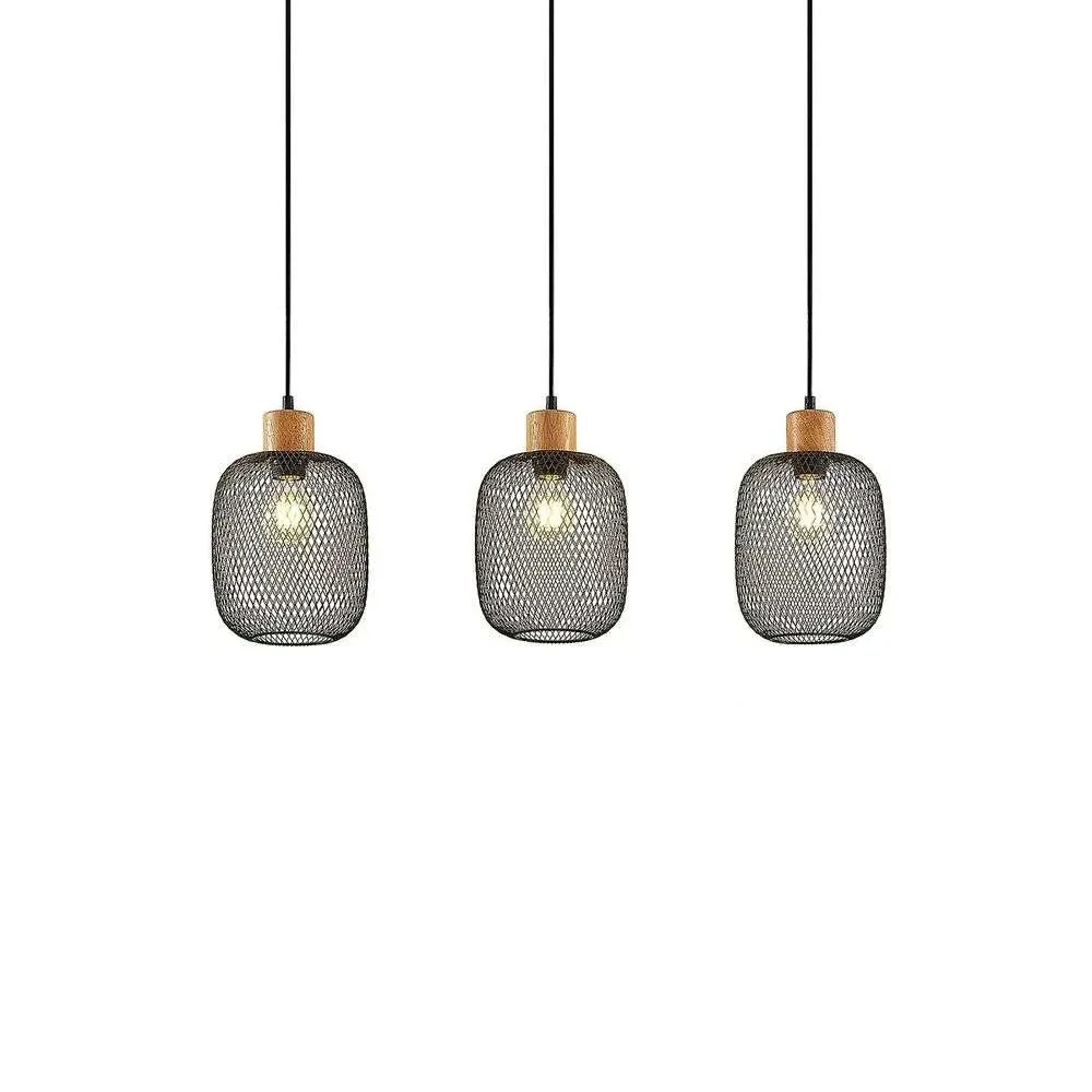Djuna 3 Lámpara Colgante Black/Wood – Lindby