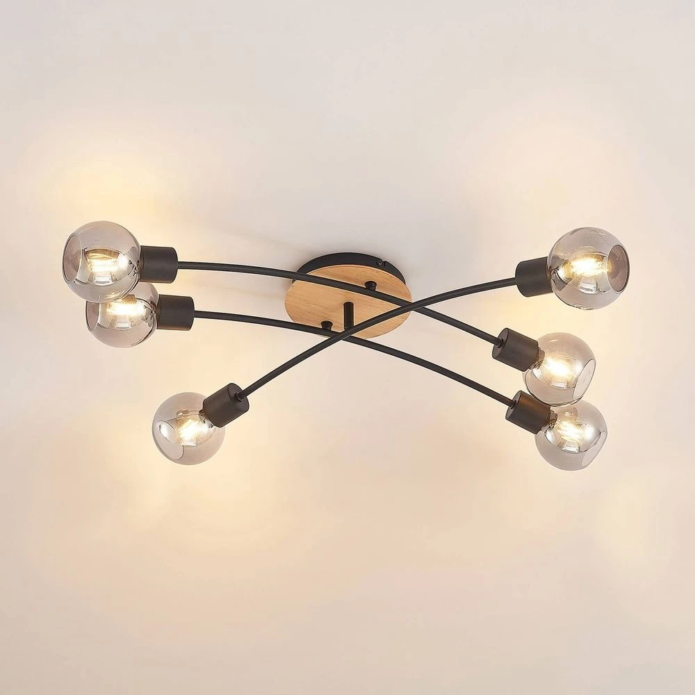 Eridia 6 Cross Lámpara De Techo Black/Wood – Lindby