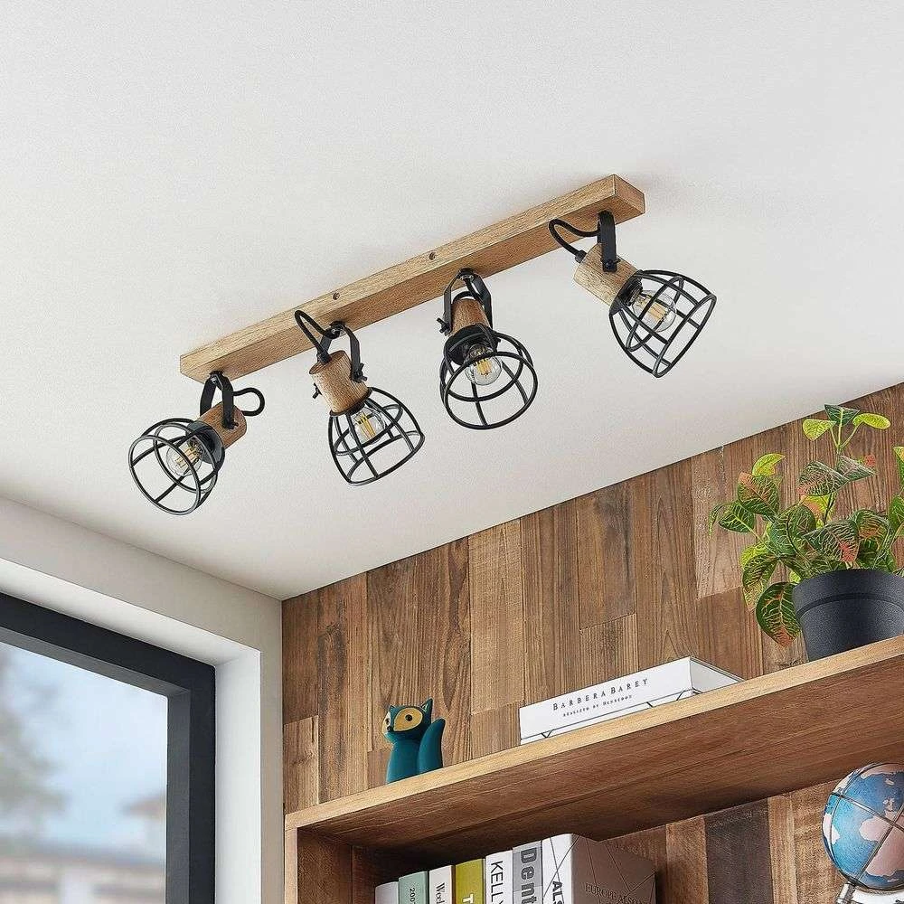 Flintos 4 Lámpara De Techo Wood/Black – Lindby